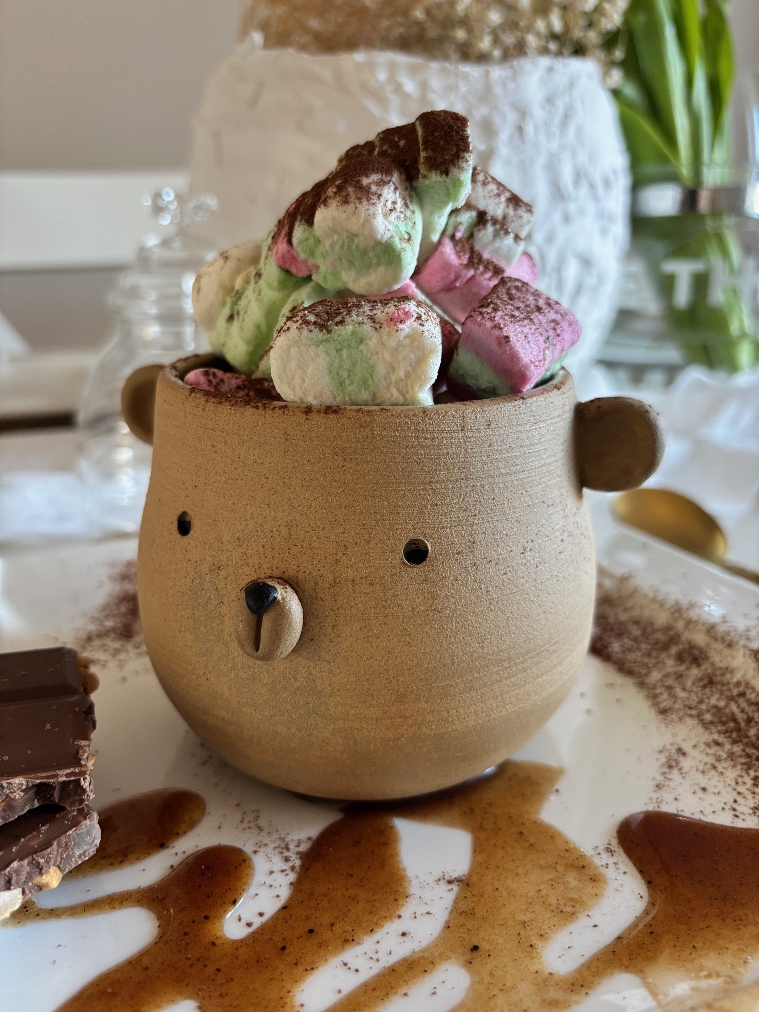Ciepła herbata, gorąca czekolada albo kawa z piankami… i kubek, który wywołuje uśmiech. Ceramiczny kubek Miś to wyjątkowe, ręcznie wykonane naczynie, które zamienia zwykły napój w mały moment przyjemności. Minimalistyczna, naturalna ceramika w połączeniu z uroczą twarzą misia sprawia, że kubek jest nie tylko praktyczny, ale również dekoracyjny. Idealny na spokojne poranki, wieczory z kakao lub jako wyjątkowy prezent. Każdy egzemplarz powstaje ręcznie, dlatego może się delikatnie różnić – i właśnie to czyni go jedynym w swoim rodzaju. Szczegóły produktu materiał: ceramika wykonanie: ręczne motyw: miś idealny do kawy, kakao i gorącej czekolady każdy egzemplarz jest unikalny Kubek, który sprawia, że chwila z ulubionym napojem staje się jeszcze przyjemniejsza.